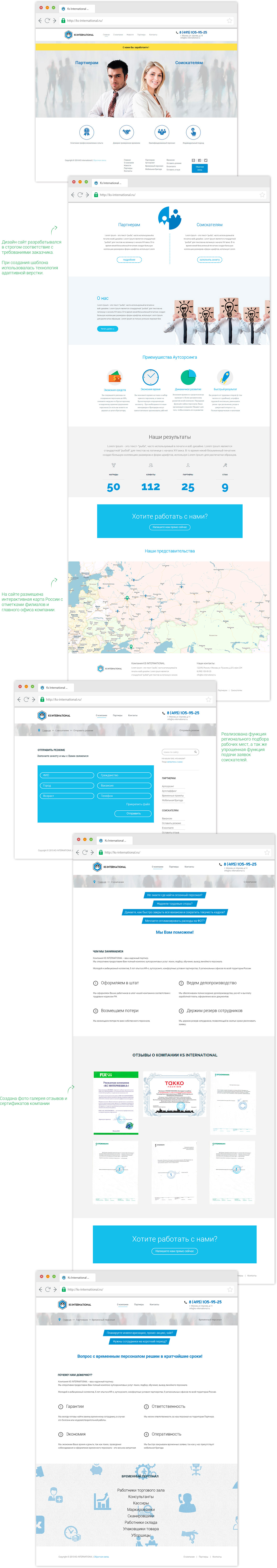 Корпоративный сайт компании по подбору персонала. Дизайн сайт разрабатывался в строгом соответствие с требованиями заказчика.