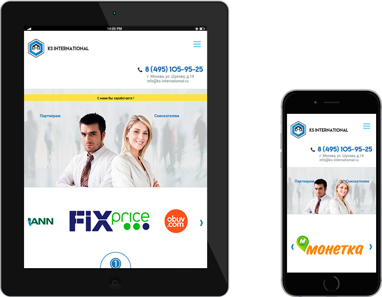 Сайт не нуждается в разработке отдельной мобильной версии, т.к. при создания шаблона мы