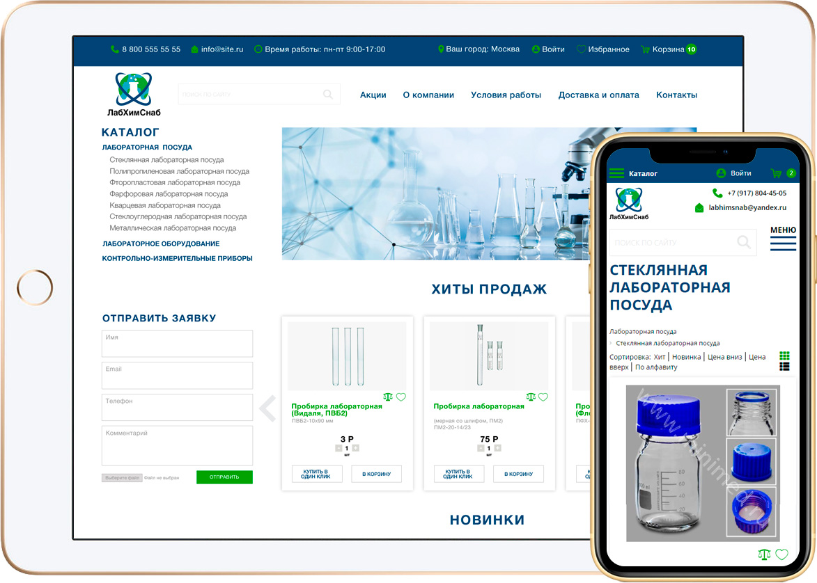 Все страницы интернет-магазина лабораторного оборудования адаптированы под мобильную версию.
