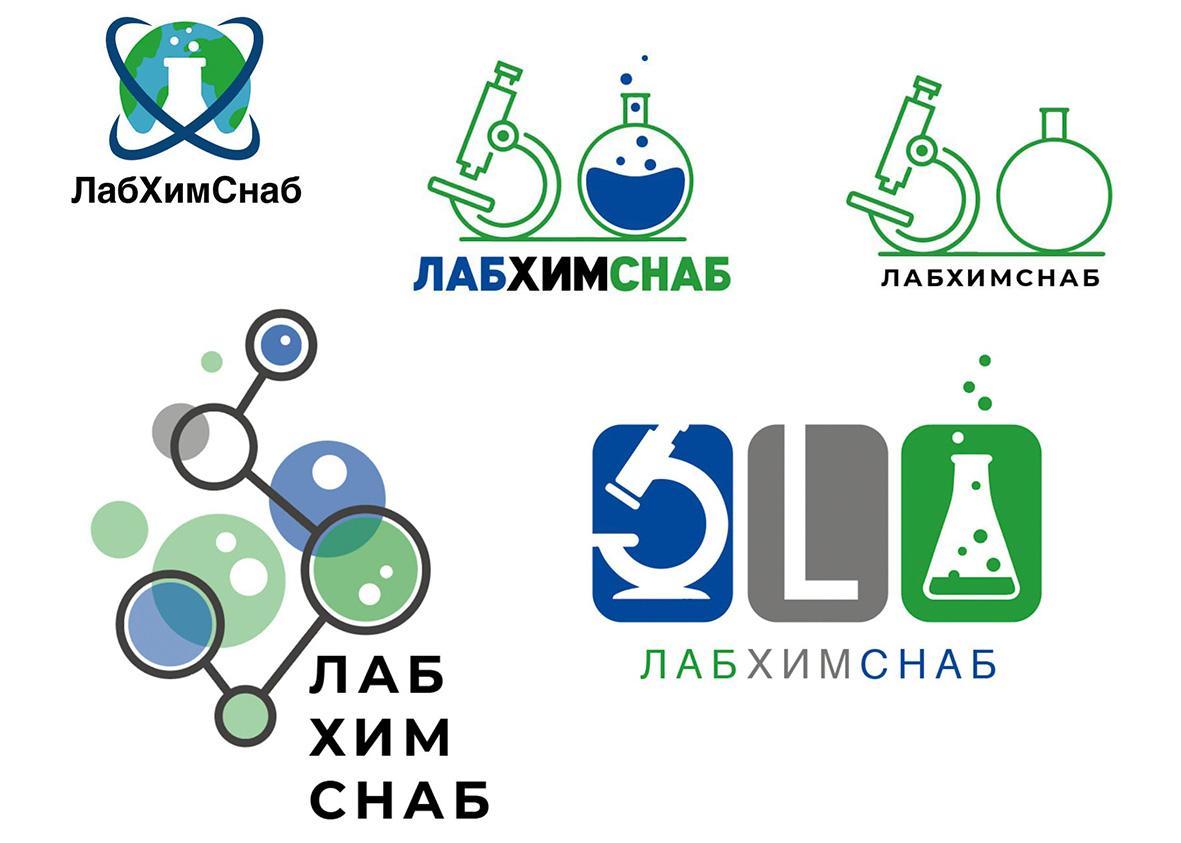 Разработали для компании ЛабХимСнаб пять вариантов логотипа для полиграфии, а так же для нанесения на стеклянную продукцию интернет-магазина.