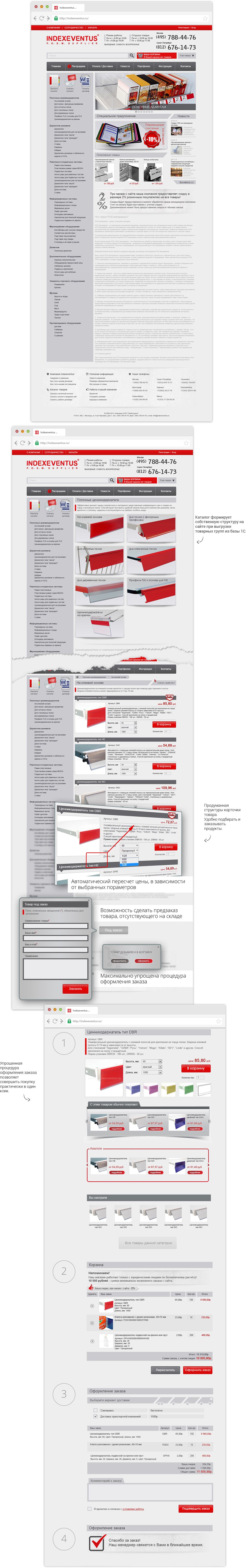 Упрощена процедура оформления заказа. Теперь его можно произвести практически в один клик. Так же можно собрать комплект товаров, если клиент заказывает сборную конструкцию.
