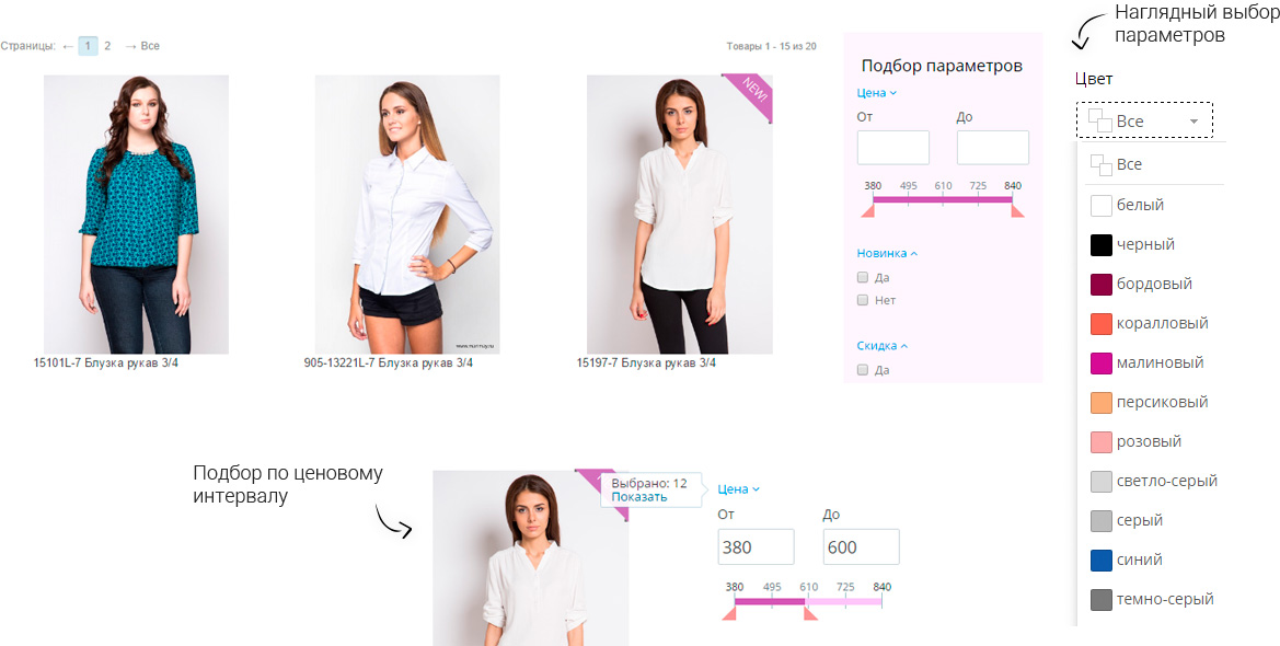 Внедрен функционал гибкой фильтрации товаров по цене и различным свойствам.