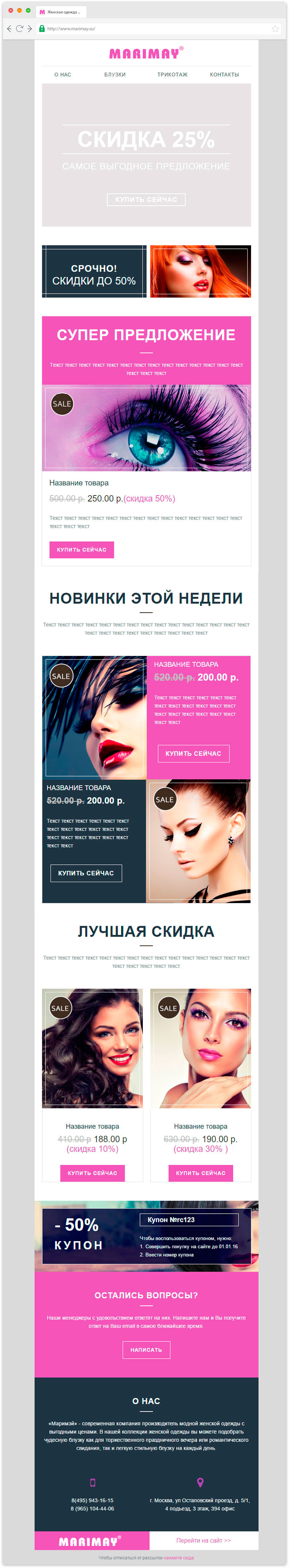 Дизайн интернет-магазина Marimay является результатом персональной работы по брендбуку компании