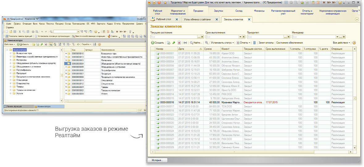 Реалтайм синхронизация заказов (взаимообмен заказами сайта и 1С)