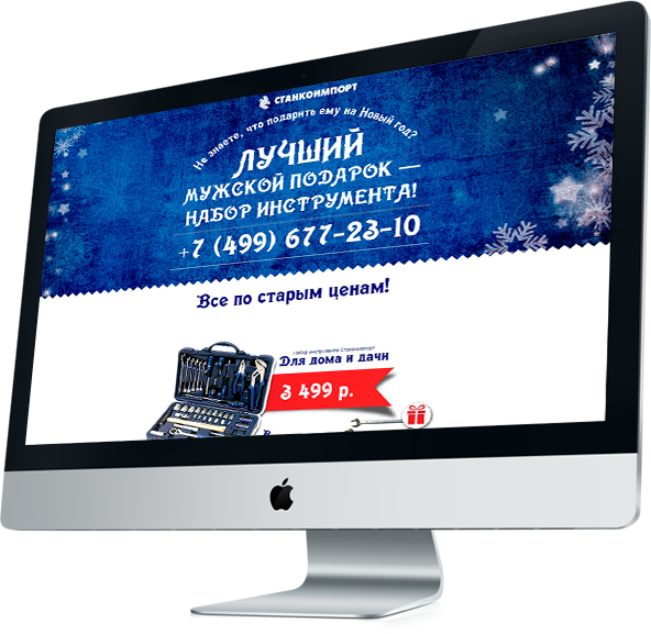 Одностроничный сайт (Landing page) создавался под новогоднюю акцию с целью максимального распространения уцененного товара за короткий промежуток времени.