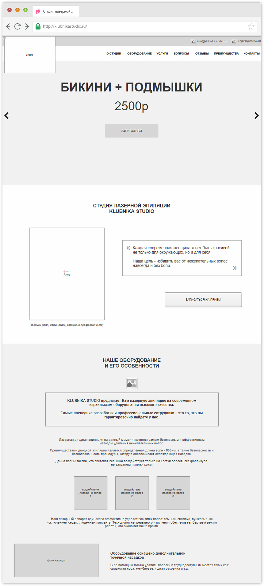 Лэндинг разрабатывался для студии лазерной эпиляции.