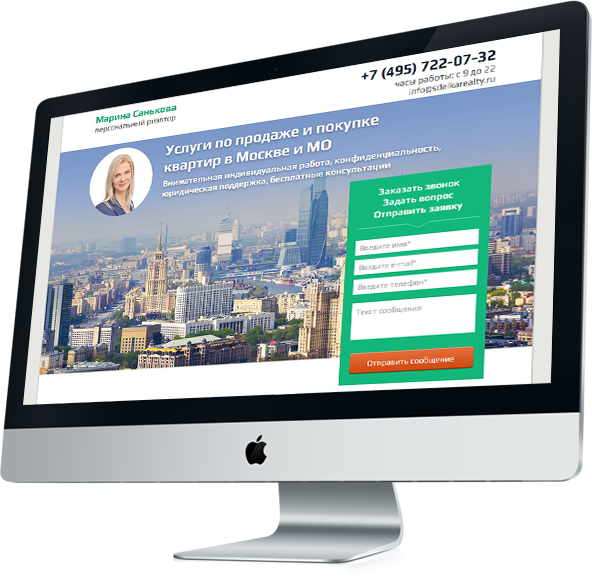 Дизайн лендинга персонального риэлтора выполнен в соответствие с правилами юзабилити,